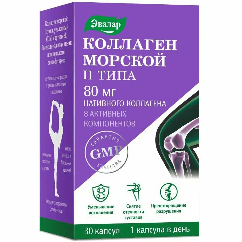 Эвалар Коллаген Морской II типа капс 80мг 0,65г №30